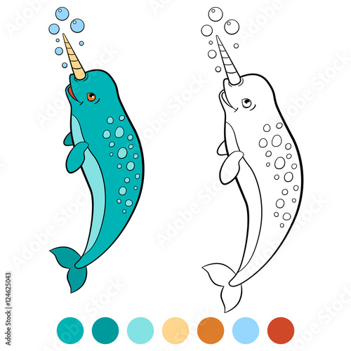 Cute baby narwhal coloring page.
